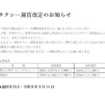 これにより、県内タクシー運賃が改定される事となり、弊社と致しましても下記のとおり新運賃での運行を行ってまいります。